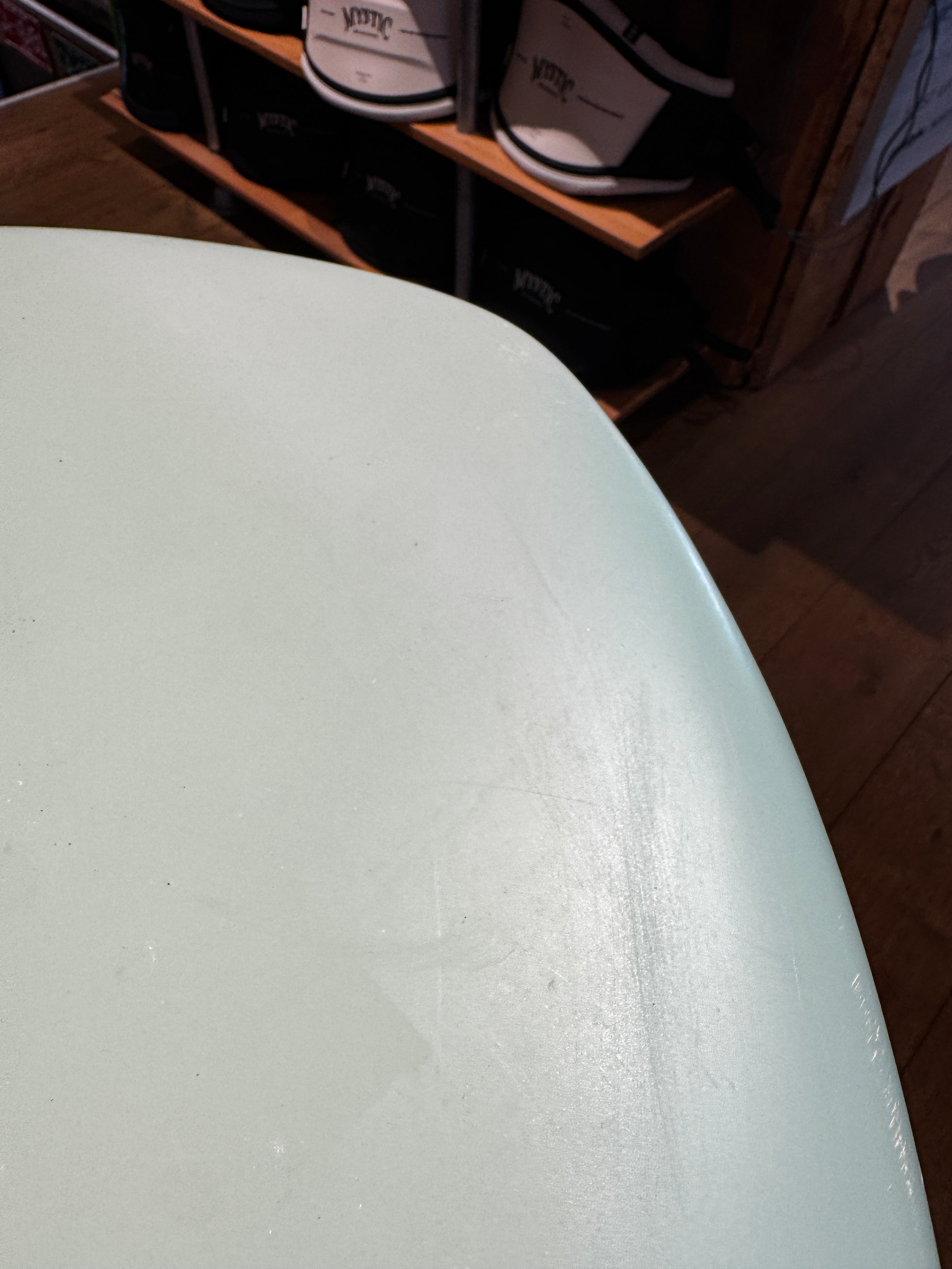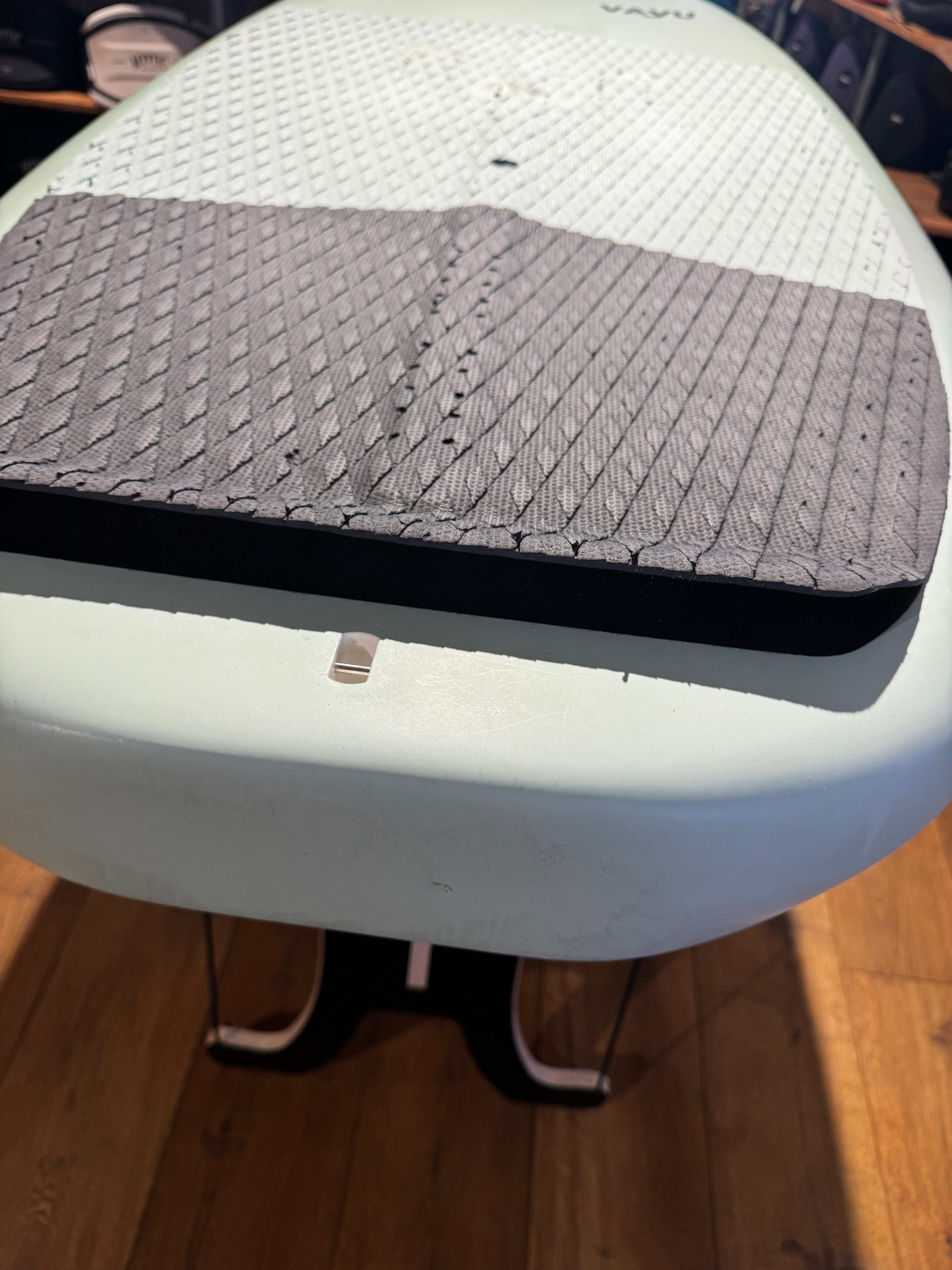 Dit Vayu Wing board is ingeruild van een klant. Het is een 5'5" met 110l. volume. Niet te lang en toch breed genoeg voor voldoende stabiliteit. Boards heeft een paar kleine reparatie gehad en daardoor zie je licht kleur verschil. Hier en daar een krasje maar dat hoort wel bij een gebruikt wing board. Daardoor ook een goede prijs. Board kan er nog jaren tegen aan!